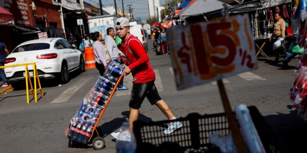 Trabalhador manuseia refrigerantes em mercado de Monterrey, no México, em janeiro de 2026.