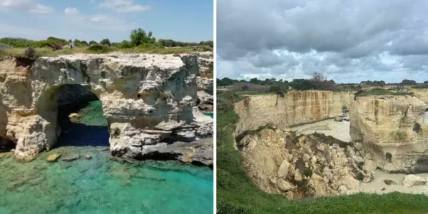Uma formação rochosa natural conhecida como “Arco do Amor” colapsou na cidade de Melendugno, na região italiana da Puglia.