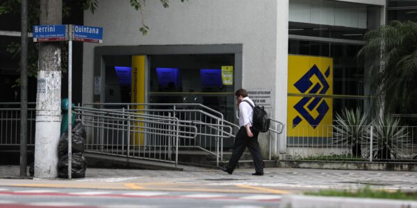 Um homem passa por uma agência do Banco do Brasil na avenida Berrini, na zona sul de São Paulo