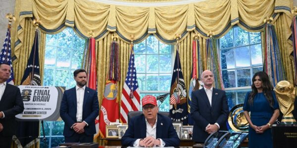 Durante o anúncio da data e local do sorteio de grupos da Copa do Mundo de 2026, nesta sexta-feira (22), o presidente dos Estados Unidos, Donald Trump, protagonizou uma “disputa” pela taça da Copa. O troféu foi levado ao Salão Oval da Casa Branca pelo presidente da Fifa, Gianni Infantino, que participou da cerimônia ao lado de Trump. Ao falar sobre a Copa de 2026 — que será sediada por Estados Unidos, México e Canadá —, o Infantino disse a Trump que o presidente poderia tocá-la “porque é um vencedor”. “Este é o troféu que o vencedor da Copa da Fifa ganha. Somente o presidente da Fifa, os presidentes dos países e aqueles que vencerem podem tocá-lo. E já que você é um vencedor, é claro que também pode tocá-lo”, afirmou Infantino.