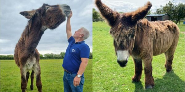 O burro mais alto e o mais ‘orelhudo’ do mundo vivem lado a lado na Inglaterra