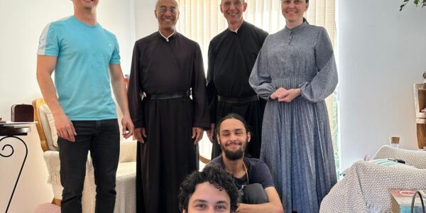 Andrea Mattei, segurando uma cruz, chega acompanhado de outros membros da comunidade LGBTQIA+