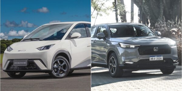 BYD Dolphin Mini (esq) e Honda HR-V (dir) são os carros mais vendidos de cada marca