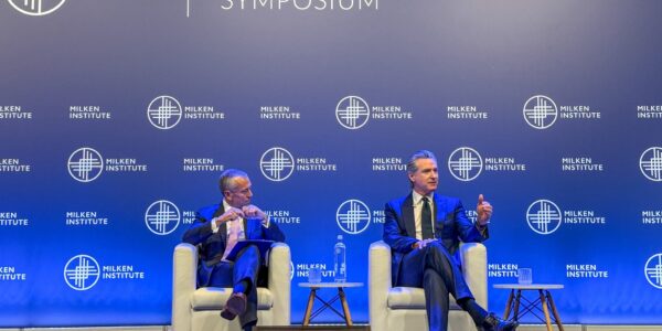 Governador da Califórnia, Gavin Newsom, participa de Simpósio Global de Investidores do Instituto Milken em São Paulo em 10 de novembro de 2025.