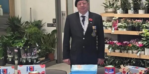 Andrew Johnson, maquinista da LNER, fotografado em uma barraca da Royal British Legion, instituição de caridade das Forças Armadas do Reino Unido