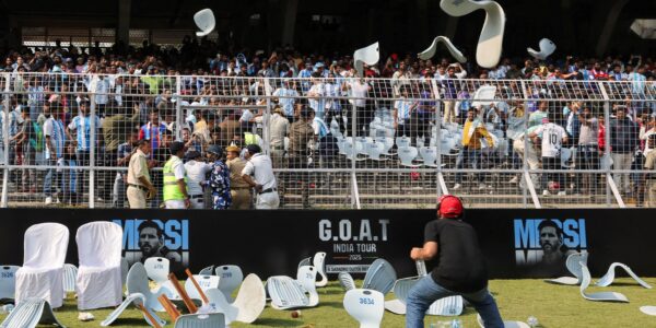 A turnê de Lionel Messi pela Índia começou de forma caótica neste sábado (13). Torcedores atiraram objetos, rasgaram assentos e invadiram o gramado do estádio Salt Lake, em Kolkata, após o craque argentino fazer uma breve aparição em um evento pago.