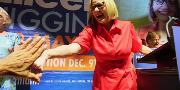A Associated Press anunciou a vitória de Higgins menos de uma hora após o fechamento das urnas, com a apuração mostrando a ex-comissária do condado de Miami-Dade à frente de seu oponente republicano, Emilio Gonzalez, por 18 pontos percentuais.