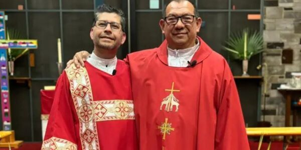 Padre Vidal Rivas com o diácono Francisco na Igreja de São Mateus em Hyattsville, Maryland, Estados Unidos.