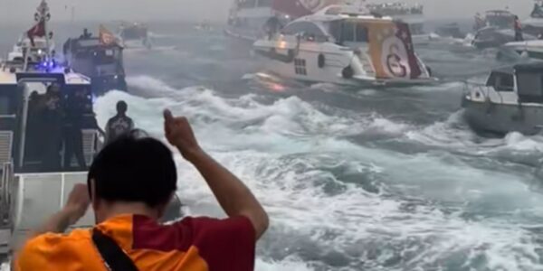 É #FAKE que vídeo de barcos com pessoas comemorando mostre ativistas em direção a Gaza; trata-se da torcida do Galatasaray