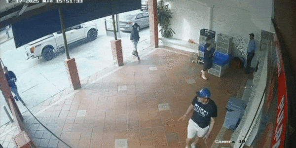 O jogador estava em um açougue com a família quando o ataque aconteceu. As imagens mostram dois homens armados chegando ao local e atirando contra Pineida e a esposa.