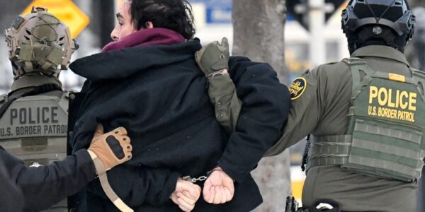 Agentes federais detêm manifestante em Saint Paul, Minnesota, em 8 de janeiro de 2026.