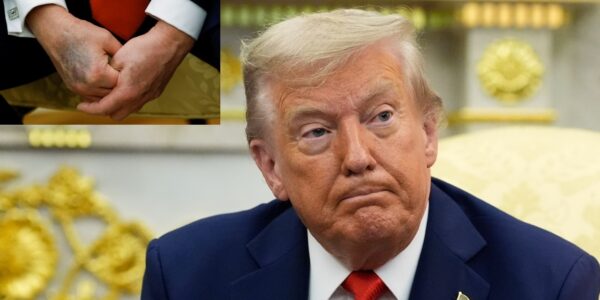 “Não quero que sangue espesso circule no meu coração”, disse. Trump disse que usa maquiagem e bandagens para esconder os hematomas. O presidente afirmou ainda que sofreu um corte na mão após a procuradora-geral, Pam Bondi, o atingir acidentalmente com um anel.