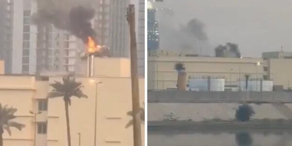 O ataque foi reivindicado pelo grupo iraquiano Kataib Hezbollah, aliado ao Irã. Vídeos mostram fumaça e chamas saindo do prédio da…