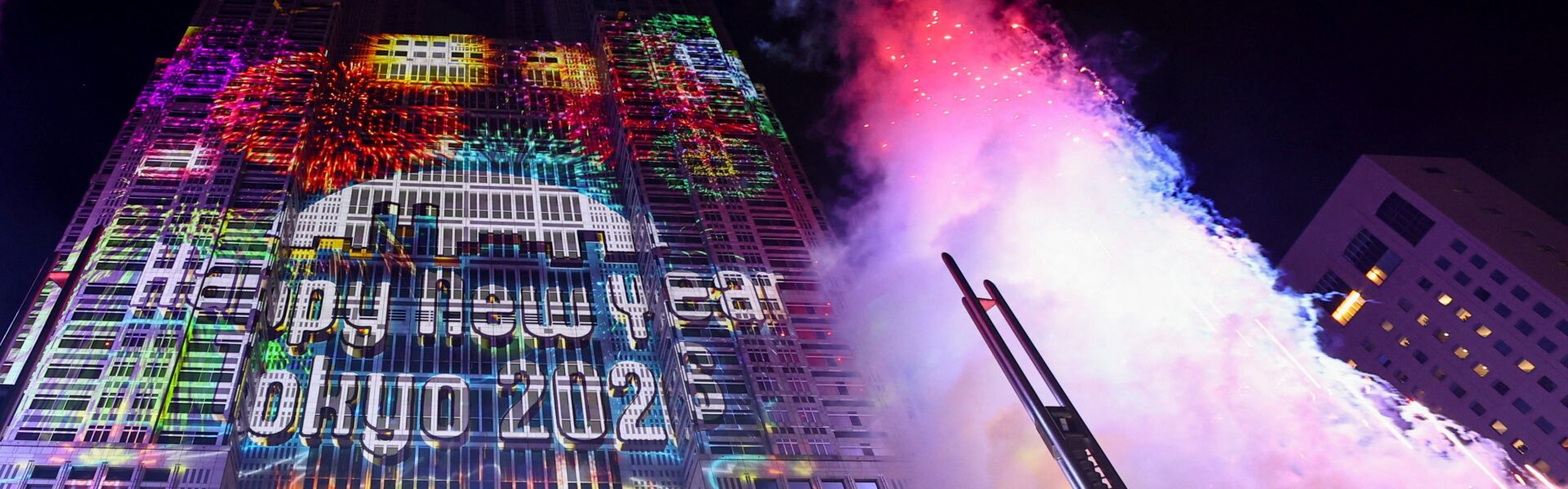 Pessoas reagem após a contagem regressiva para o Ano Novo em frente ao prédio do Governo Metropolitano de Tóquio — Foto: REUTERS/Issei Kato