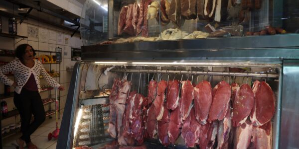 Uma pessoa espera para ser atendida dentro de um açougue no Rio de Janeiro, Brasil, em 10 de julho de 2025.