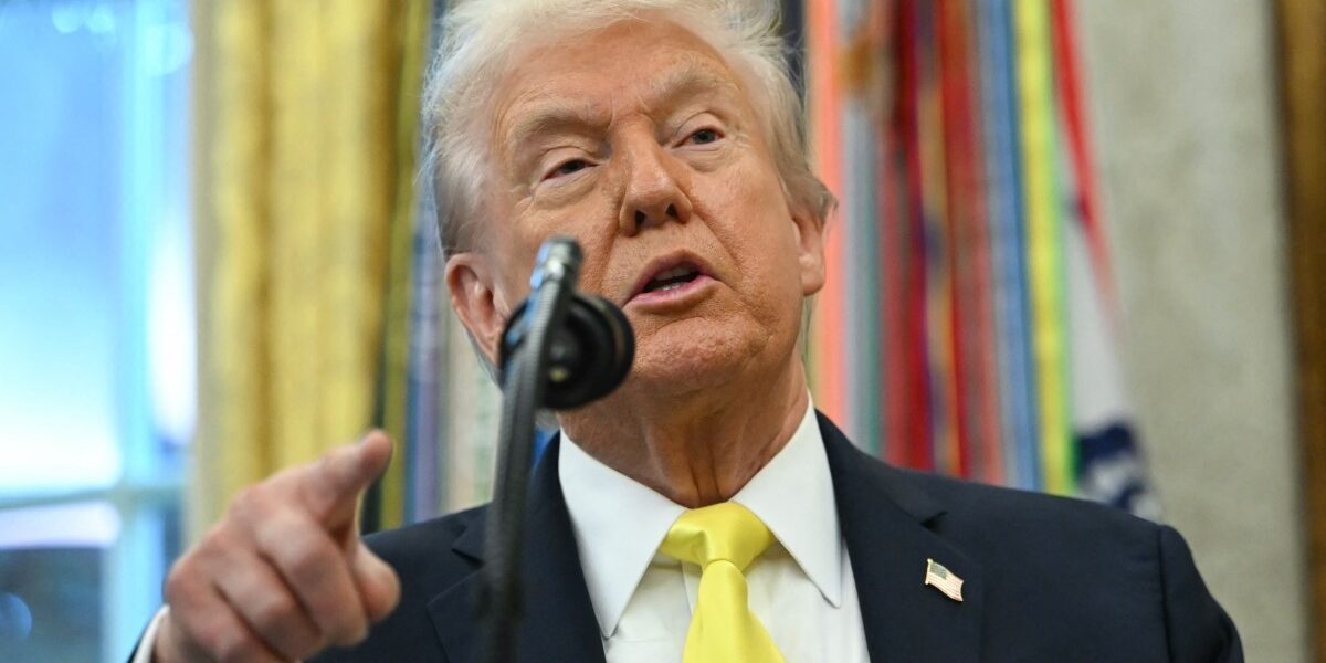 Donald Trump em pronunciamento na Casa Branca, em 15 de outubro de 2025 — Foto: ANDREW CABALLERO-REYNOLDS / AFP