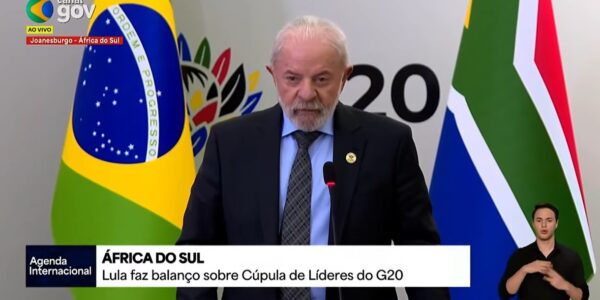O presidente Luiz Inácio Lula da Silva afirmou neste domingo (23) em Joanesburgo, na África do Sul, que pretende assinar o acordo comercial entre o Mercosul e a União Europeia no próximo dia 20 de dezembro. “[…] Pretendo não viajar mais esse ano, a não ser para Brasília ou para Foz do Iguaçu para assinar o acordo Mercosul-União Europeia, que eu penso que será assinado no dia 20 de dezembro”, disse Lula ao descartar novas viagens internacionais até o fim do ano.