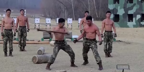 As demonstrações, ocorridas no domingo (29) e registradas pelo canal estatal KRT, incluíram soldados quebrando tijolos com a cabeça e dando marteladas no abdômen de colegas.