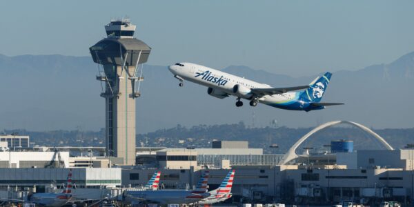 Voo da Alaska Airlines decola do Aeroporto Internacional de Los Angeles, em 6 de novembro de 2025