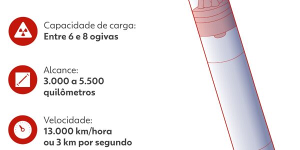 Para a embaixadora-adjunta dos EUA na ONU, Tammy Bruce, o disparo representa “mais uma escalada perigosa e sem explicação da guerra”. Nesta imagem feita a partir de um vídeo divulgado pelo serviço de imprensa do Ministério da Defesa da Rússia na segunda-feira, 29 de dezembro de 2025, o sistema de mísseis Oreshnik, da Rússia, aparece durante um treinamento em local não divulgado em Belarus