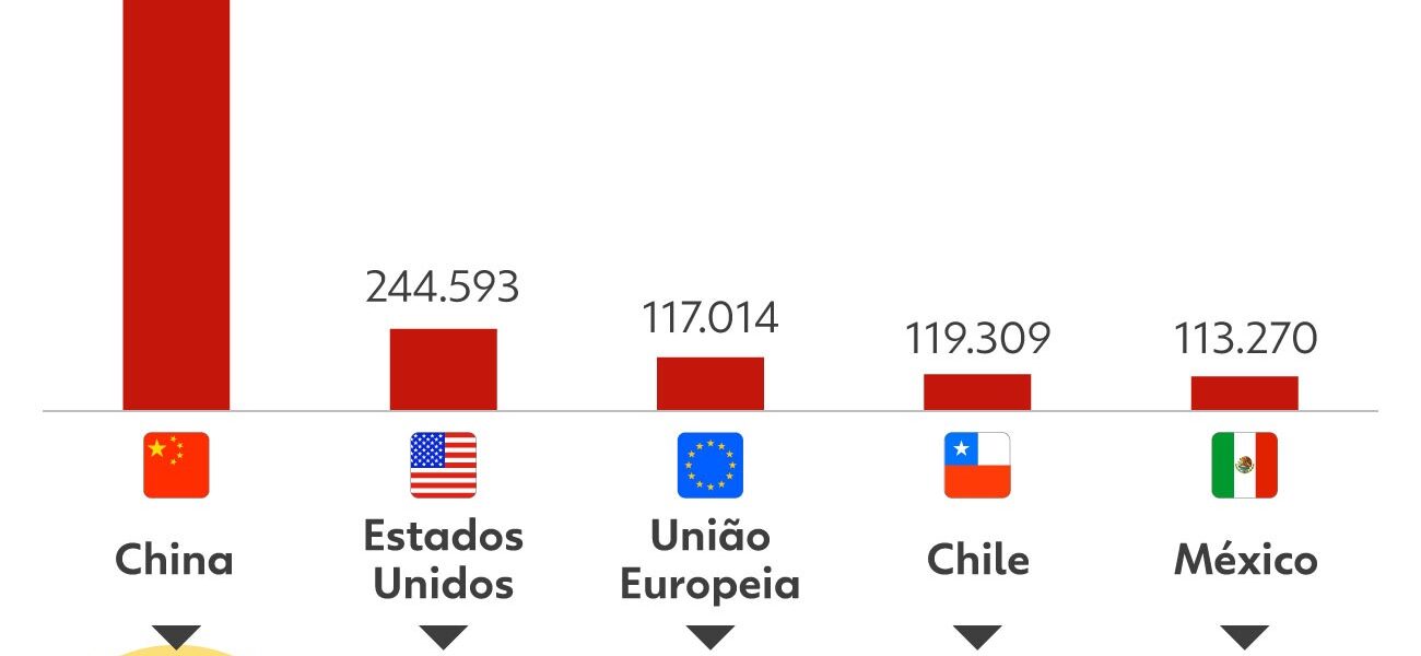 É um número próximo ao recorde de 2,87 milhões de toneladas compradas pela China em 2024, mas abaixo do volume importado nos primeiros 11 meses de 2025.