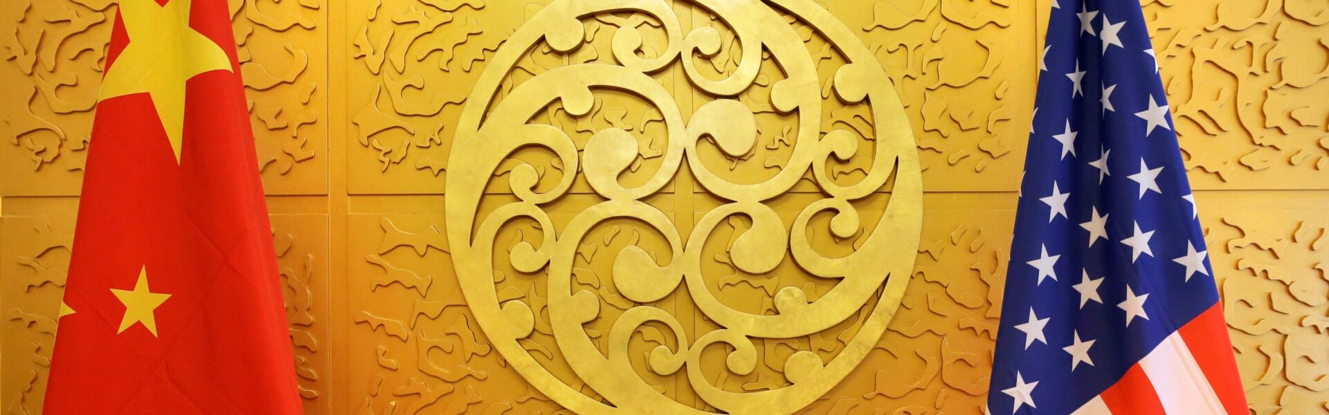 Bandeiras da China e dos Estados Unidos em imagem de arquivo de encontro diplomático de representantes dos países em abril — Foto: Jason Lee/Reuters