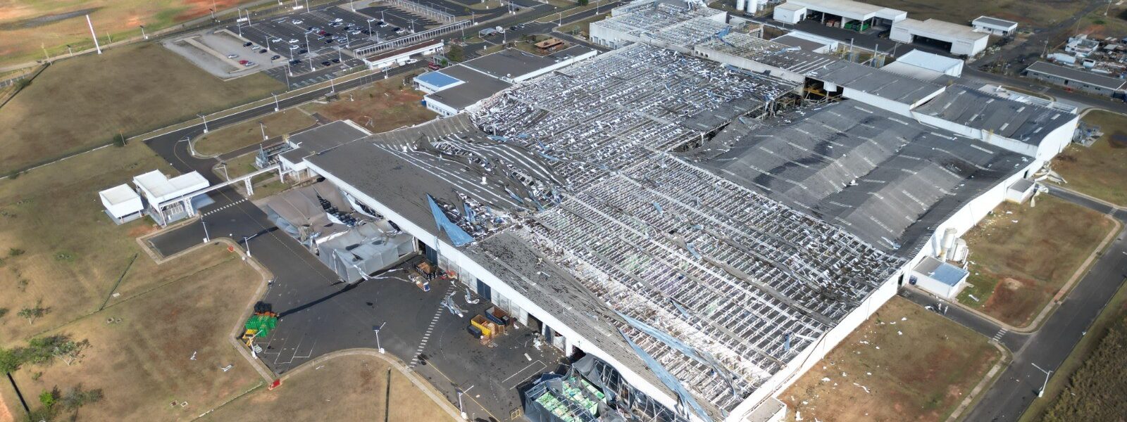 Fábrica de motores da Toyota, em Porto Feliz (SP), teve a cobertura arrancada pelo vento — Foto: Vinicius Rogillim/Arquivo Pessoal
