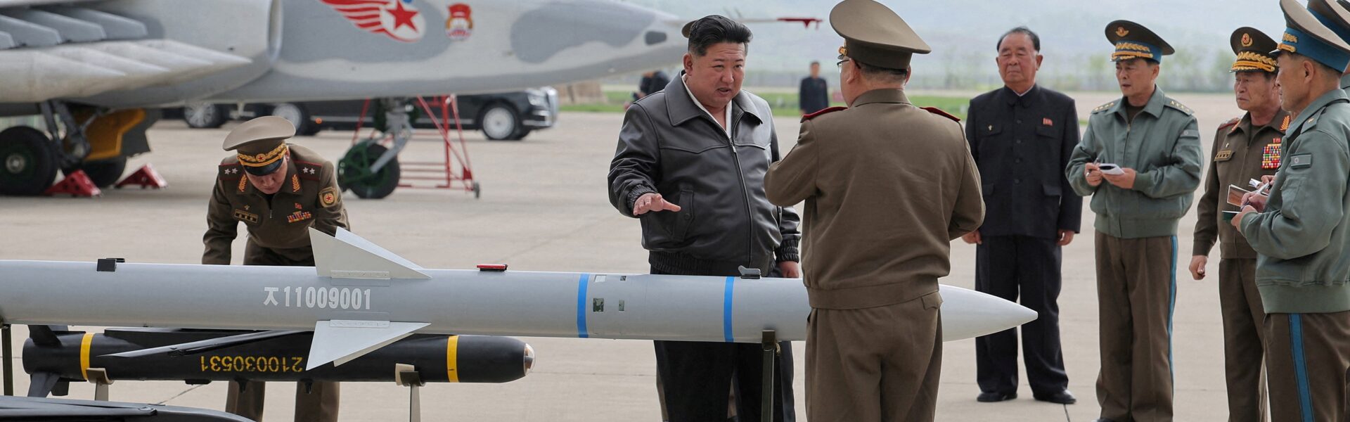 Líder da Coreia do Norte, Kim Jong-un, durante supervisão a exercícios de aviões de combate, em 17 de maio de 2025. — Foto: KCNA via Reuters