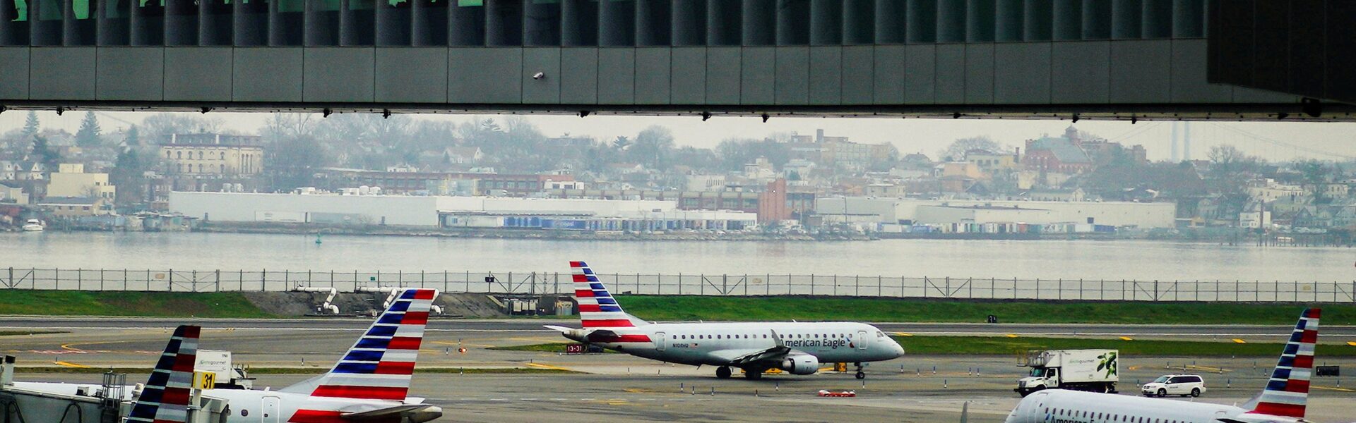 Aviões estacionados no aeroporto de LaGuardia, em Nova York — Foto: Reuters