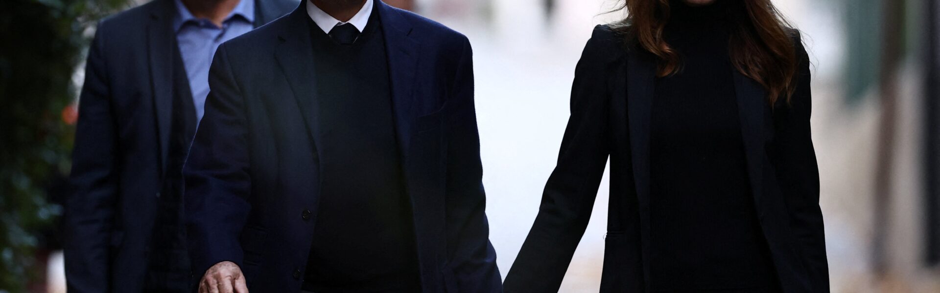 Ex-presidente francês Nicolas Sarkozy deixa sua casa com a esposa Carla Bruni para ir à prisão e começar a cumprir pena de cinco anos — Foto: Sarah Meyssonnier/Reuters