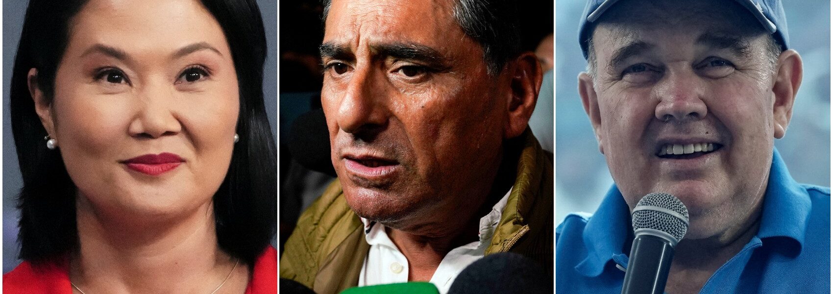 Keiko Fujimori, Carlos Álvarez e Rafael Lopez Aliaga — Foto: Reuters/Angela Ponca; Reuters/Leslie Moreno; Reuters/Angela Ponce