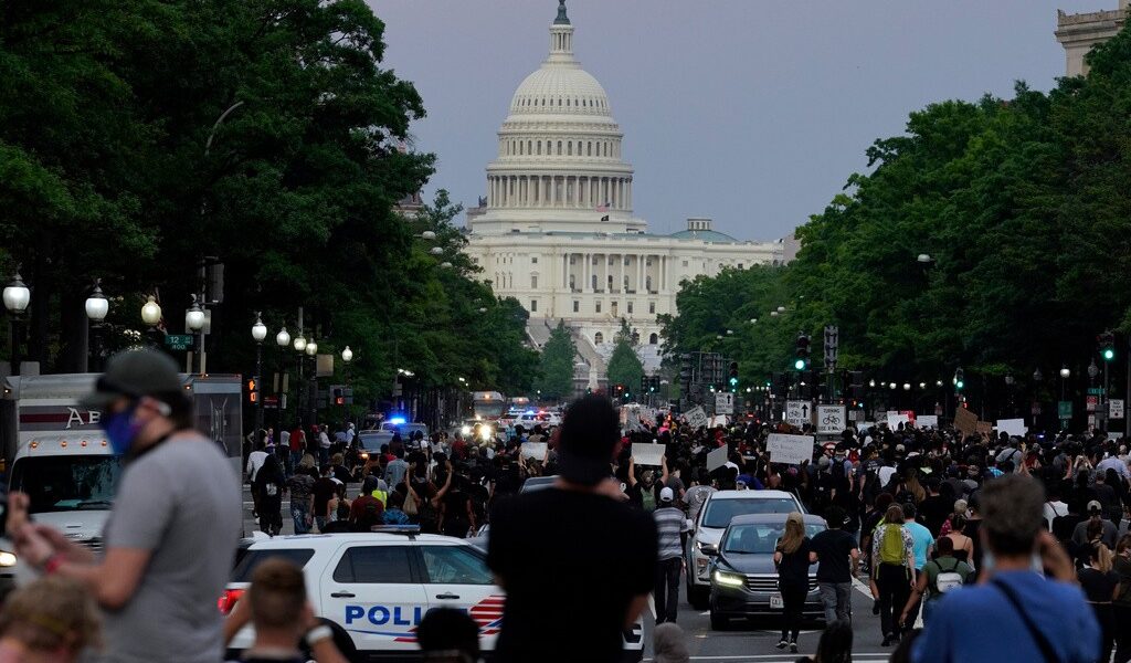 Manifestantes caminham por Washington D.C. em protesto pela morte de George Floyd, em maio de 2020 — Foto: Evan Vucci/AP