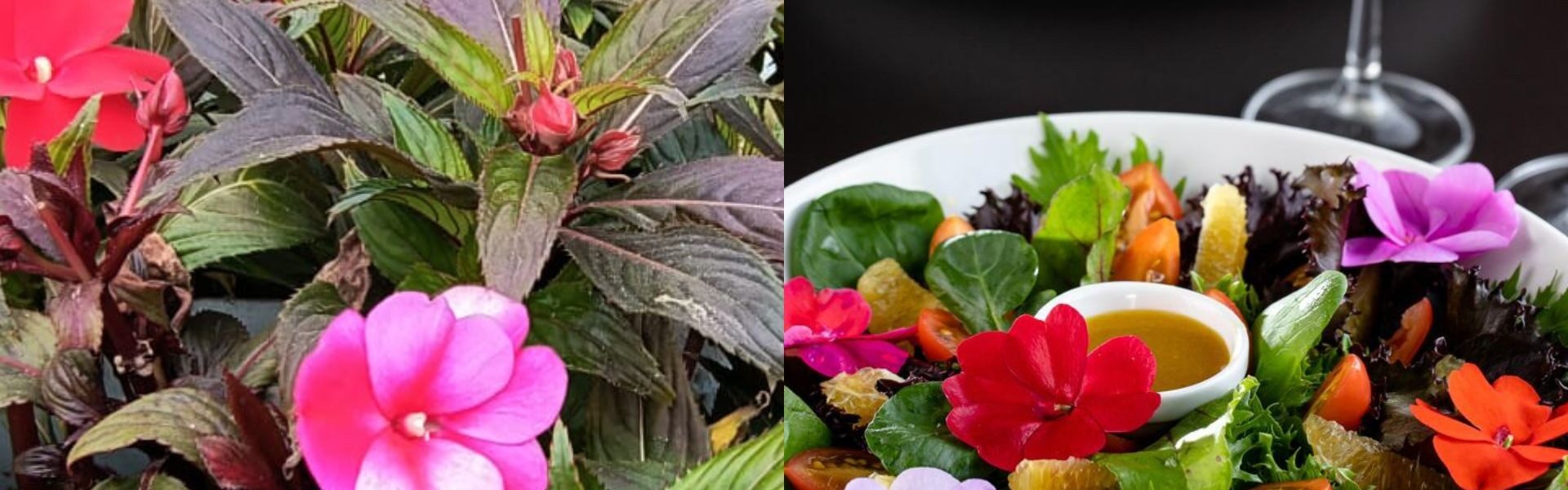 - 🌷 Beijo (Impatiens walleriana): flores em várias cores (rosa, vermelha, branca, laranja); sabor suave, levemente adocicado; usadas em pratos decorativos.