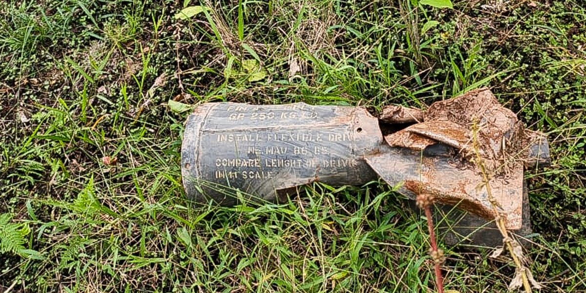 Fragmento que governo da Colômbia diz ser de bomba que atingiu território colombiano em 16 de março de 2026. Presidente colombiano acusou Equador por ataques. — Foto: Wilmar Garzón Melendes/ AFP