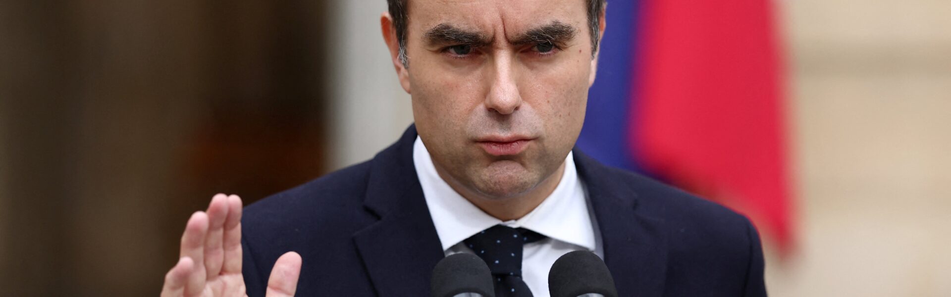 O primeiro-ministro francês Sébastien Lecornu, que apresentou sua renúncia ao presidente francês esta manhã, faz uma declaração no Hotel Matignon em Paris, em 6 de outubro de 2025. — Foto: Reuters/Stephane Mahe/Pool