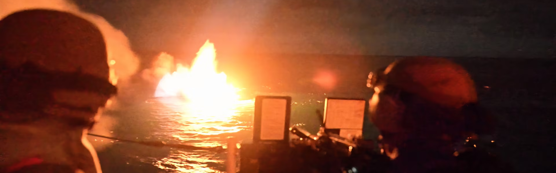 Imagem mostra destruição de embarcação que transportava drogas no Oceano Pacífico — Foto: Guarda Costeira dos EUA / Divulgação