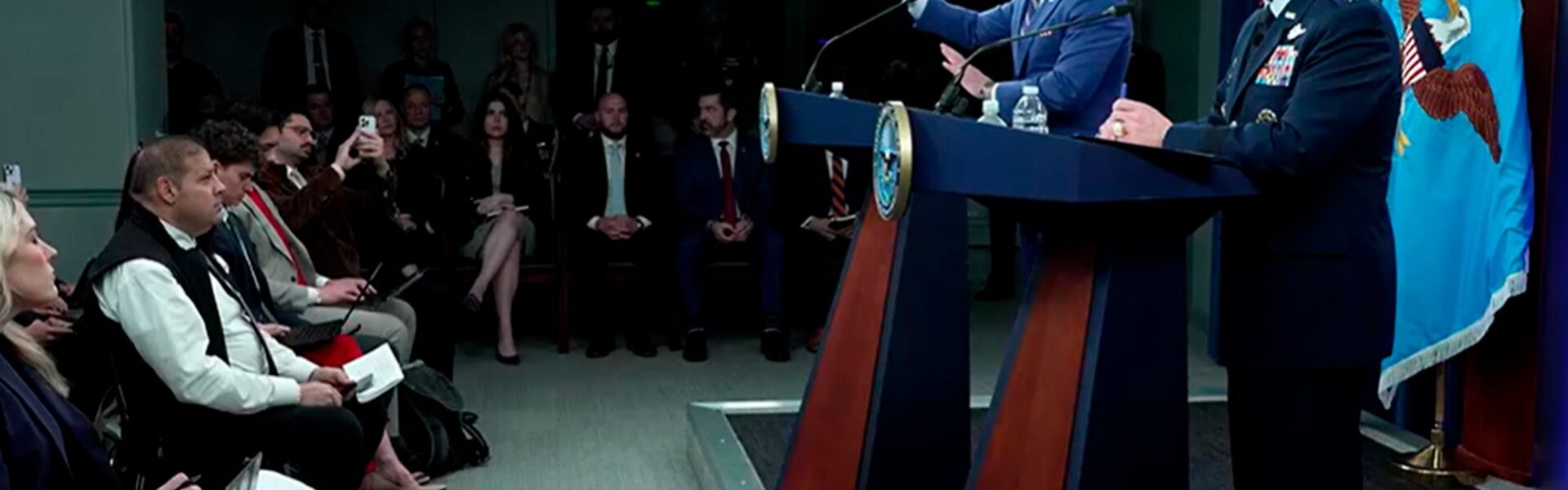 O general Dan Caine, chefe do Estado-Maior Conjunto, falou sobre os planos de ataque ao lado do secretário. Revelou que os EUA realizaram ataques contra mais de 5 mil alvos, entre eles mais de 50 navios de guerra, nos primeiros 10 dias e que tem como alvo agora “navios lançadores de minas e instalações de armazenamento”.