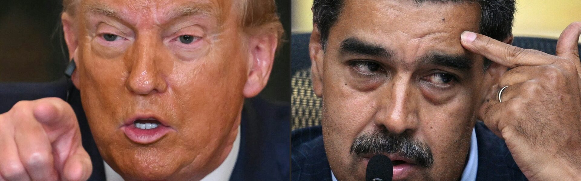 Imagem mostra o presidente dos EUA, Donald Trump (E), em Washington, DC, em 9 de julho de 2025, e o presidente venezuelano, Nicolás Maduro (D), em Caracas, em 31 de julho de 2024. — Foto: AFP/Jim Watson