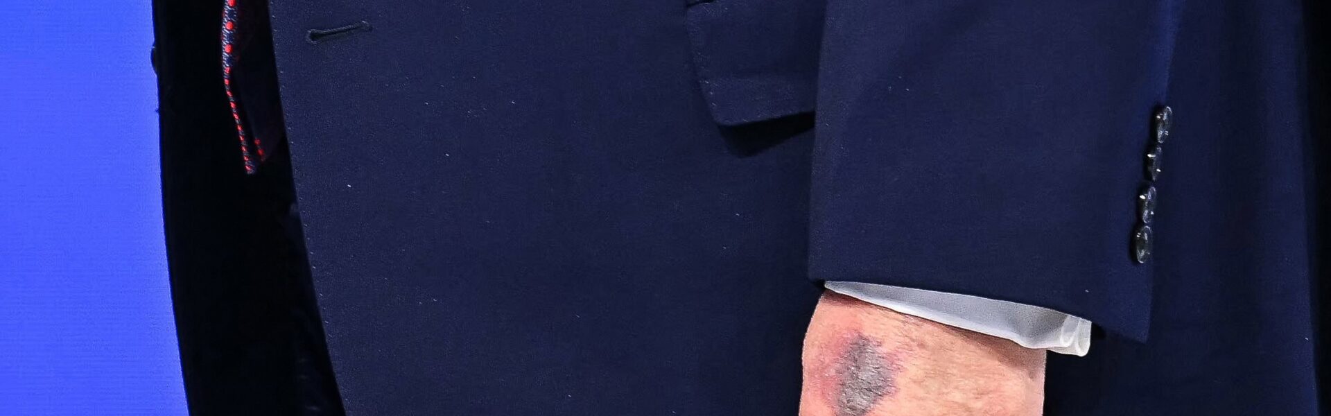 Uma mancha roxa voltou a aparecer na mão do presidente dos EUA, Donald Trump, durante uma aparição pública nesta quinta-feira (22).
