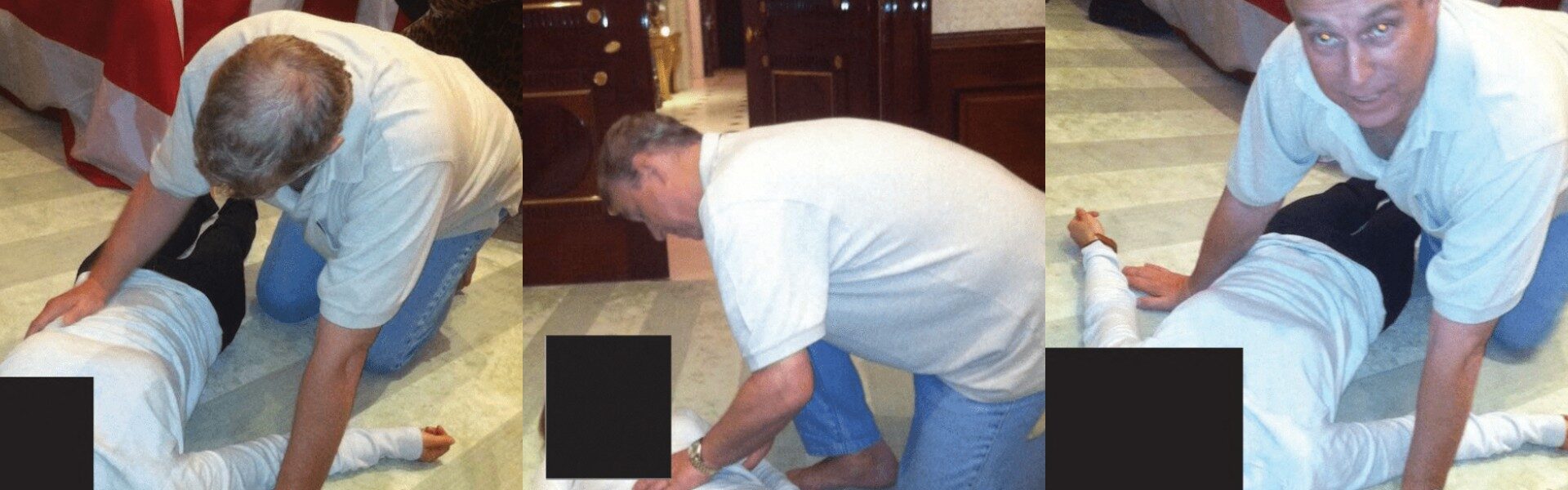 Novos arquivos de Epstein mostram ex-príncipe inglês Andrew ajoelhado ao lado de mulher — Foto: DEPARTAMENTO DE JUSTIÇA DOS EUA/AFP