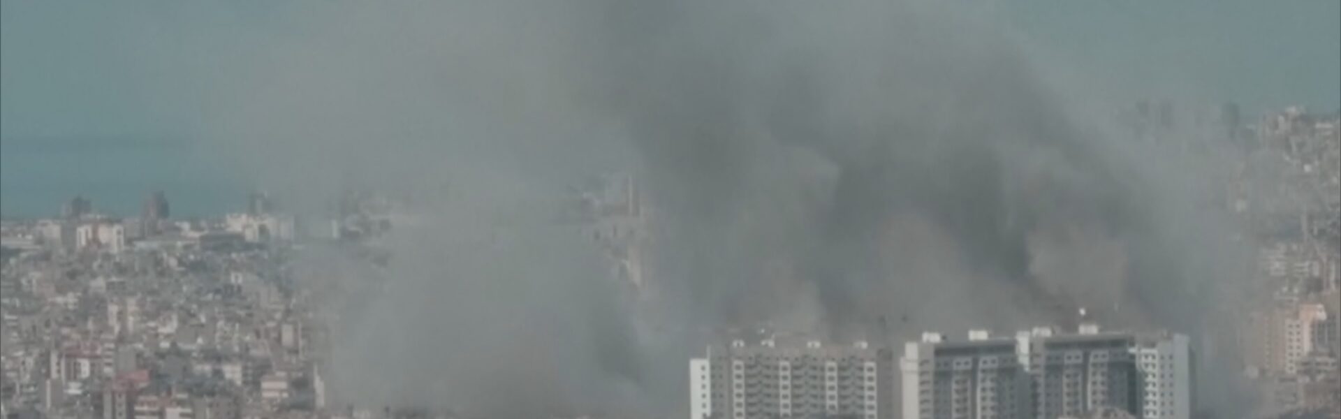 Na outra frente da guerra, explosões sacudiram os subúrbios ao sul de Beirute, no Líbano — Foto: Jornal Nacional/ Reprodução