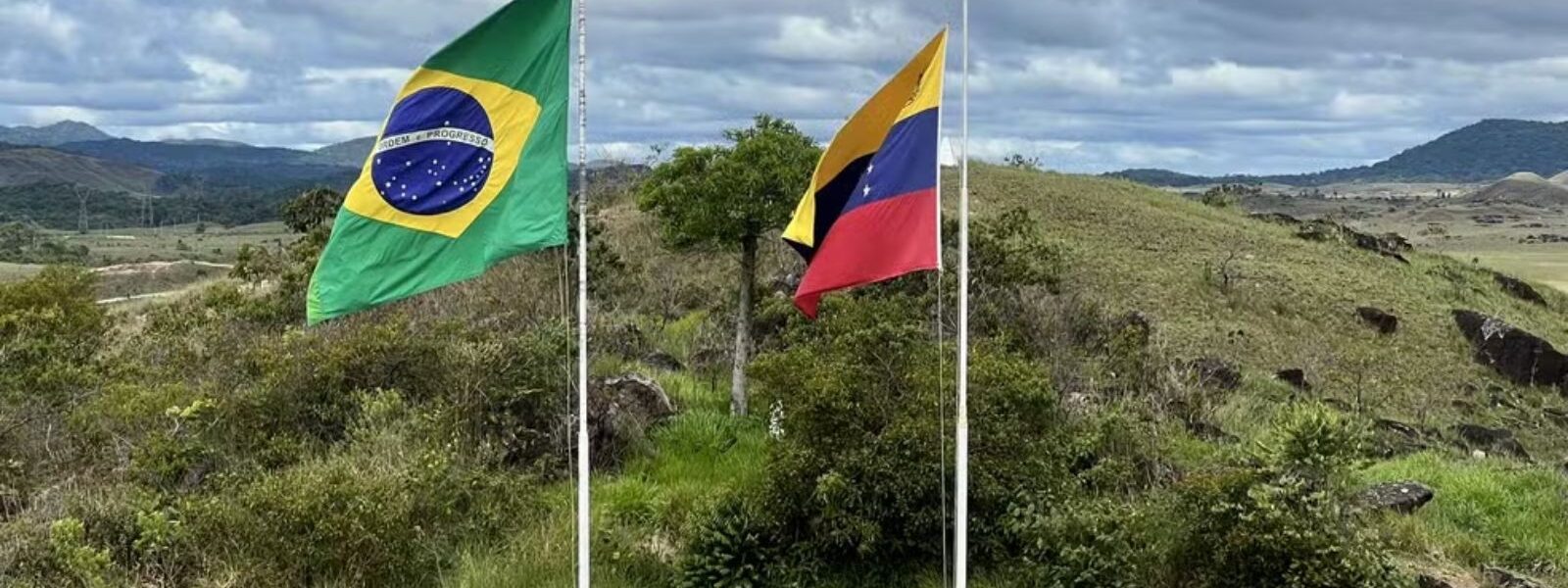 Bandeira do Brasil com a Venezuela na fronteira — Foto: Caíque Rodrigues/g1 RR