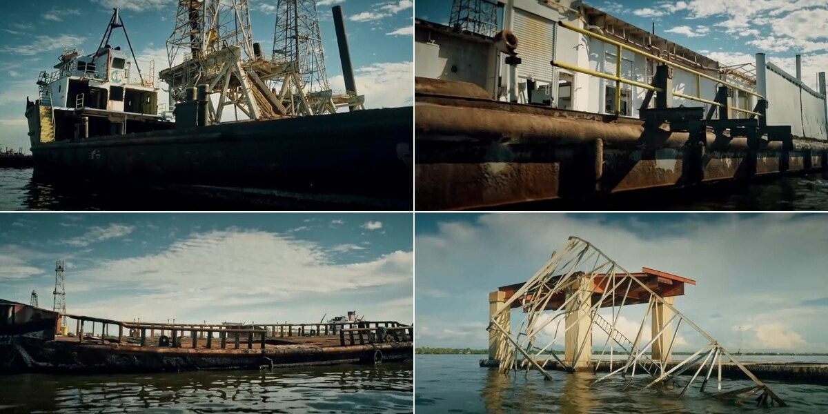 As imagens da decadência das plataformas de exploração de petróleo na Venezuela — Foto: Reprodução / Fantástico