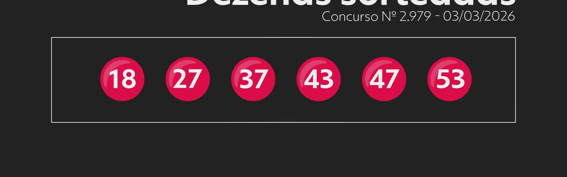 Veja os números sorteados: 18 – 27 – 37 – 43 – 47 – 53.