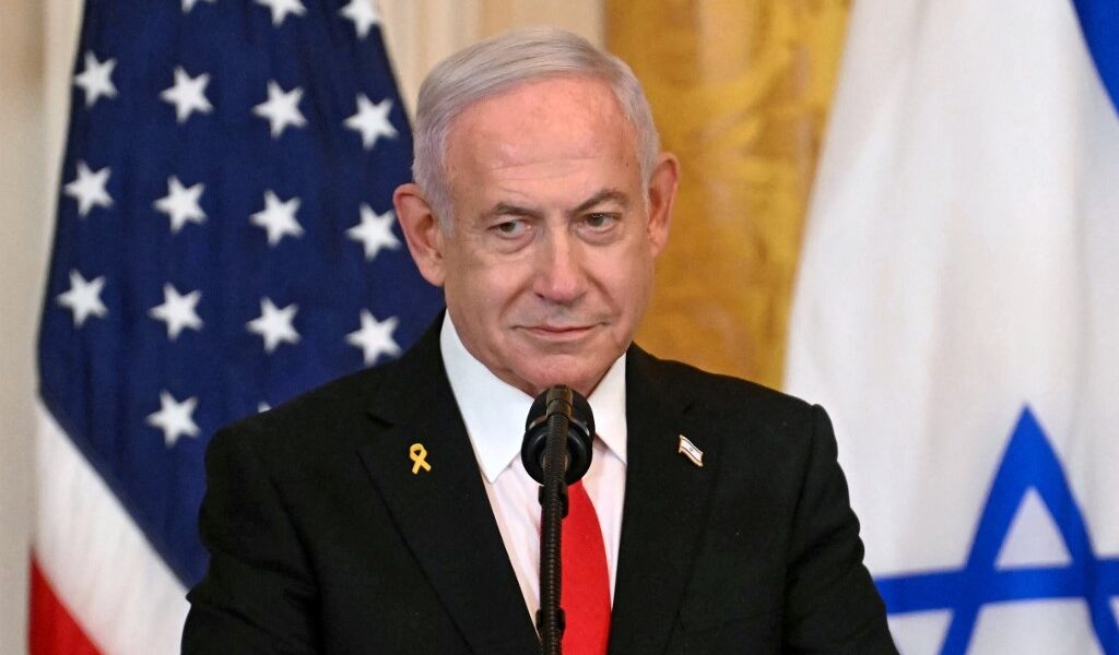 Netanyahu durante coletiva à imprensa na Casa Branca, após encontro com Trump — Foto: Jim Watson / AFP