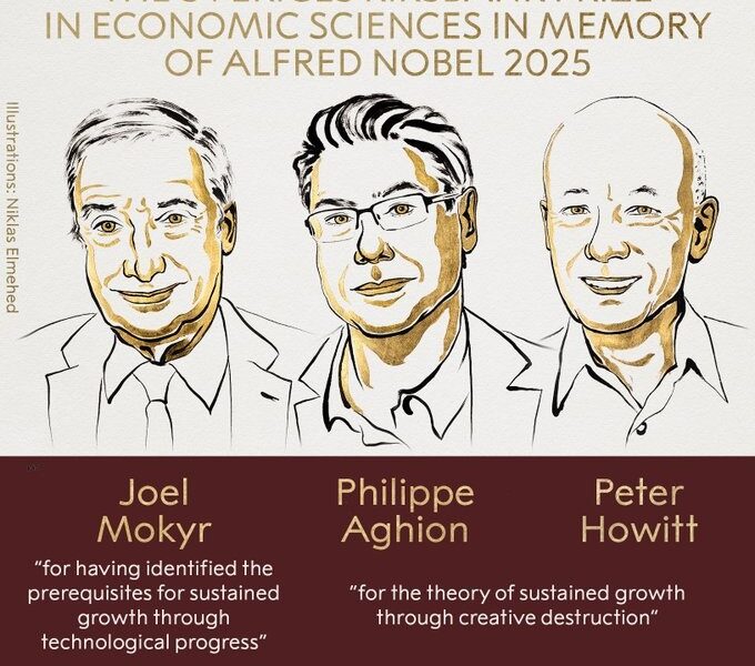 Mokyr foi reconhecido por identificar as condições necessárias para o progresso econômico sustentado, ou seja, quando a economia cresce de forma contínua e estável, sem longos períodos de estagnação ou recessão. Já Aghion e Howitt receberam o prêmio pela teoria do crescimento baseada na chamada “destruição criativa” — processo no qual inovações novas e melhores substituem as anteriores.