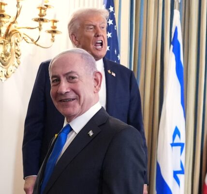 Meses depois, no que chamou de “Dia da Libertação”, impôs tarifas entre 10% e 50% sobre produtos de quase todos os países do mundo. Nesse caso, afirmou que o déficit comercial dos Estados Unidos — quando o país importa mais do que exporta — representava uma “ameaça extraordinária e incomum”.