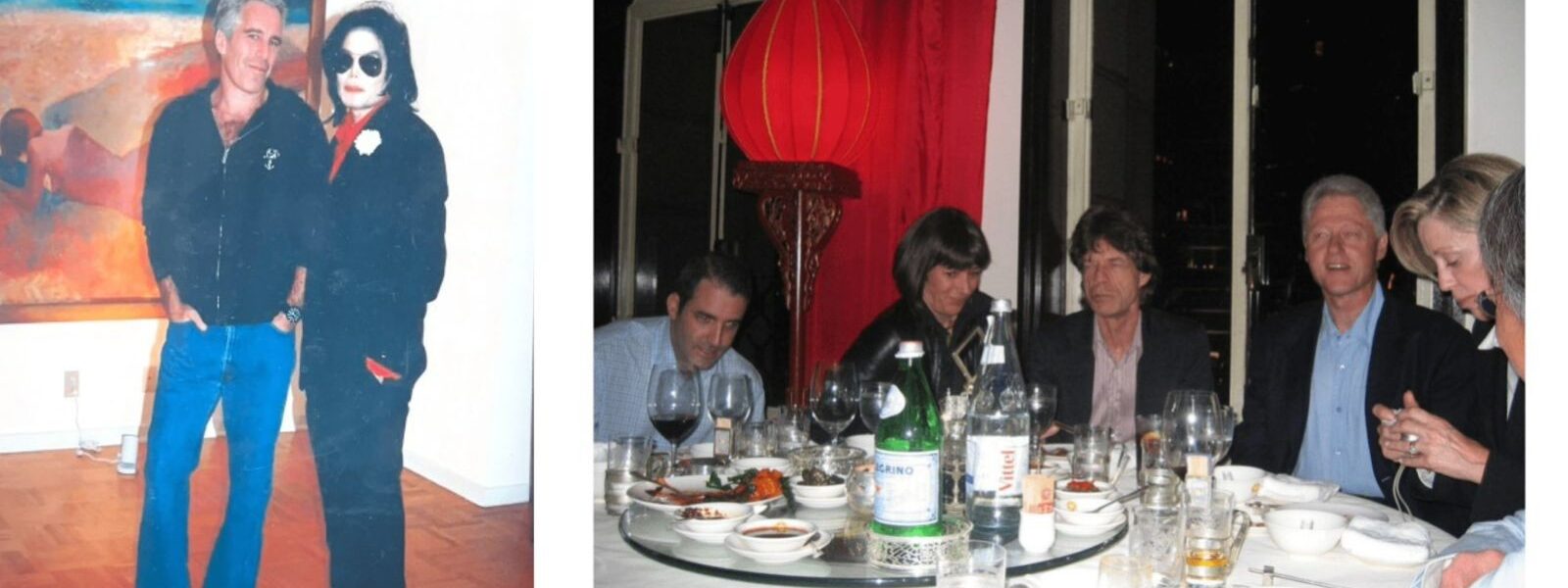 Fotos mostram Epstein ao lado de Michael Jackson e jantar com Bill Clinton e Mick Jagger — Foto: Departamento de Justiça dos EUA