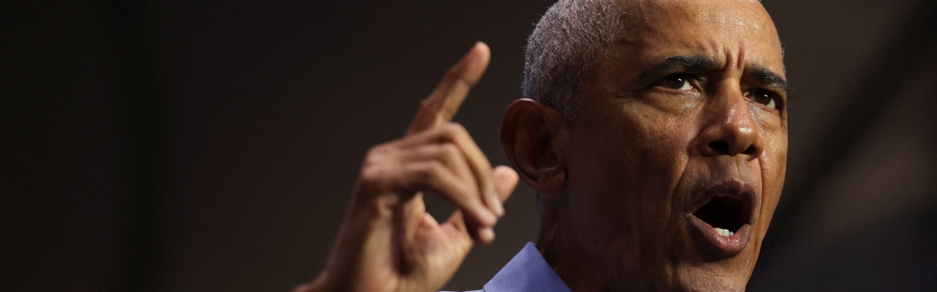 Barack Obama durante fala em comídio democrata em Newark, Nova Jersey, no sábado (1°) — Foto: Kylie Cooper/Reuters