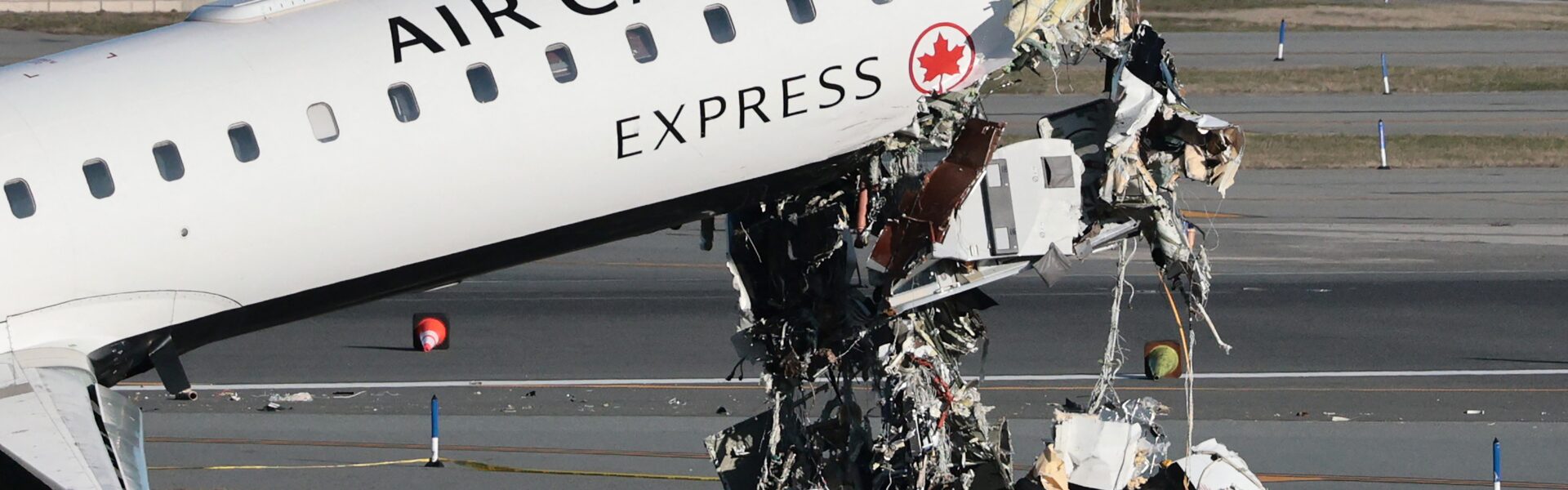 Avião da Air Canada Express segue na pista um dia após colidir com caminhão de bombeiros no aeroporto LaGuardia, em Nova York — Foto: Michael M. Santiago / Getty Images via AFP